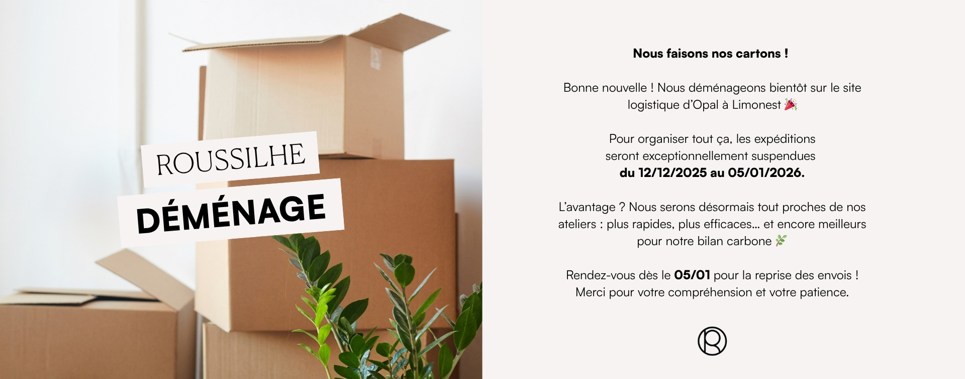 ROUSSILHE DÉMÉNAGE Publié le : 20/11/2025 Pour tous vos retours, nouvelle adresse logistique dès le 01/12/2025 :OPAL LOGISTIQUE - 145 Allée des Chênes - 69760 Limonest